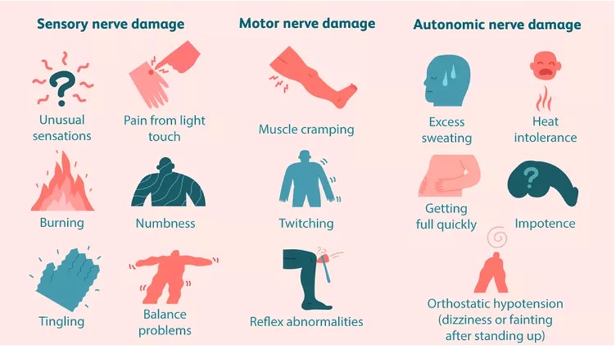 • Uncontrolled diabetes (diabetic neuropathy) — high blood sugar levels reduce blood flow and oxygen supply to nerves